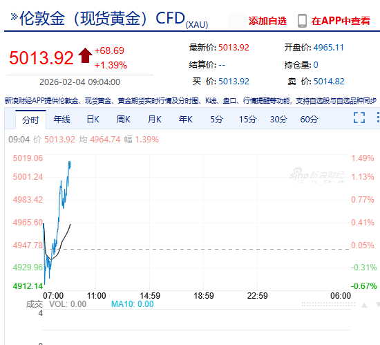 北京时分2月4日上昼配资查询官网,现货黄金龙套5000好意思元/盎司,日内涨超1%。